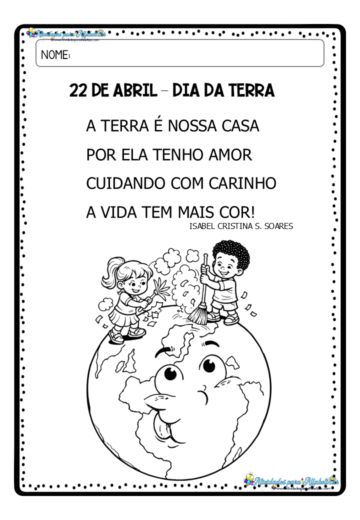 Uma das propostas dentro das atividades para educação infantil Dia da Terra (22 de Abril) é a leitura de um poema simples e significativo: