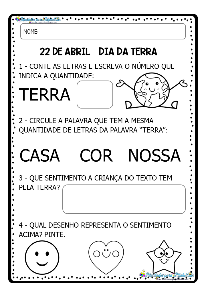 22 de abril dia da Terra atividades para alfabetizar atividades para educação infantil Atividades para Educação Infantil Dia da Terra Atividades sobre o Dia da Terra Atividades sobre o Dia da Terra para imprimir Dia da Terra para Educação Infantil