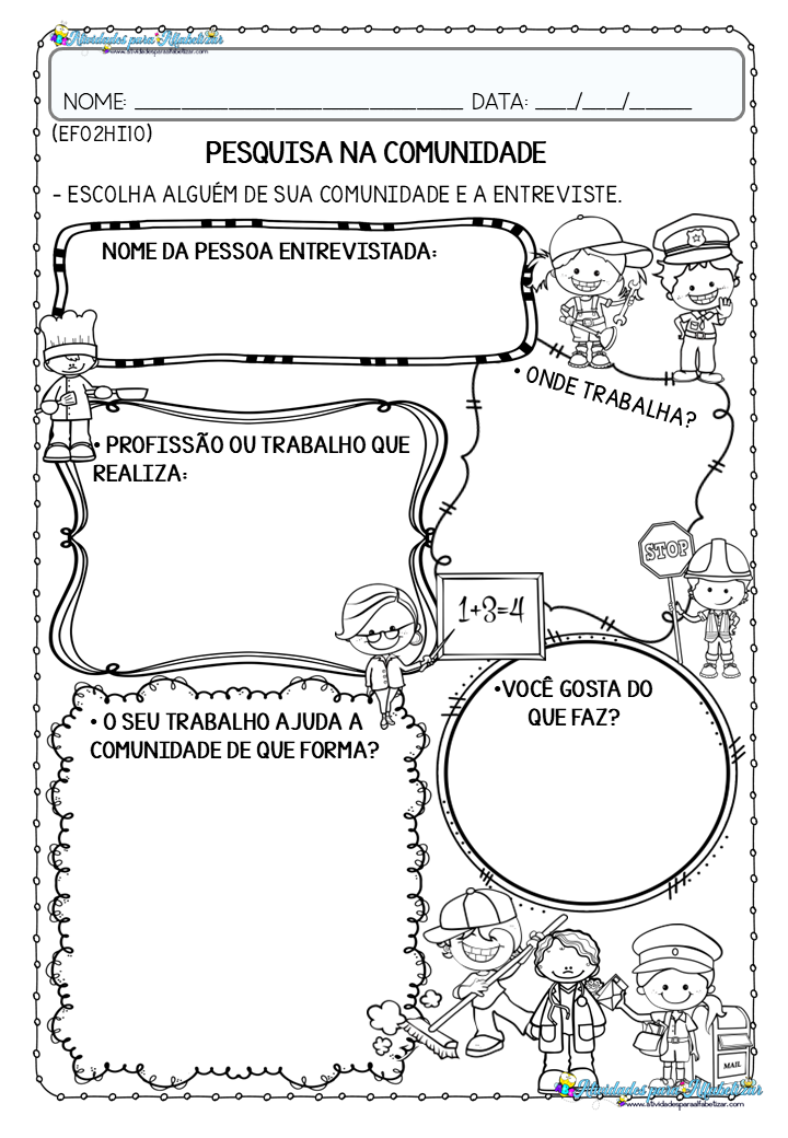 Outra atividade complementar propõe que o aluno entreviste alguém da comunidade. Essa prática fortalece o protagonismo infantil e aproxima a escola da realidade social.