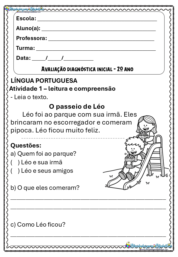 Se você procura um diagnóstico inicial 2º ano gratuito, prático e alinhado à BNCC, este material é ideal para sua turma.