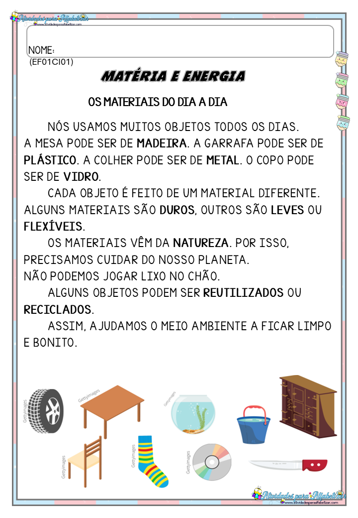 Materiais do dia a dia – Habilidade EF01CI01