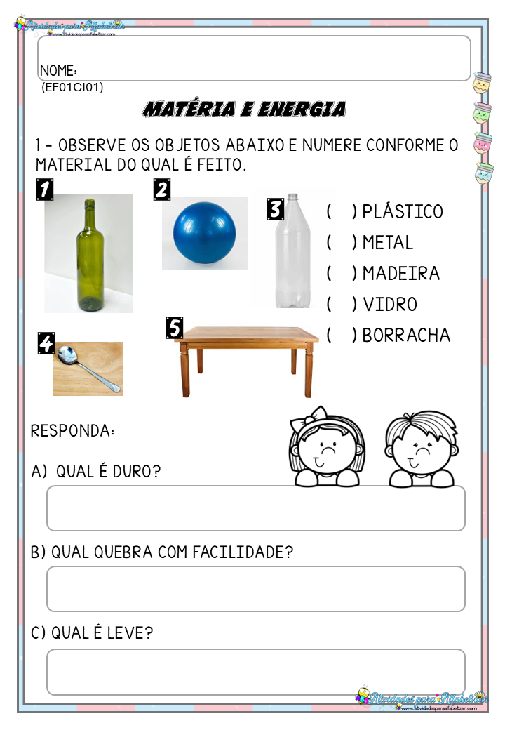 Atividades sobre materiais do dia a dia – Identificação e classificação