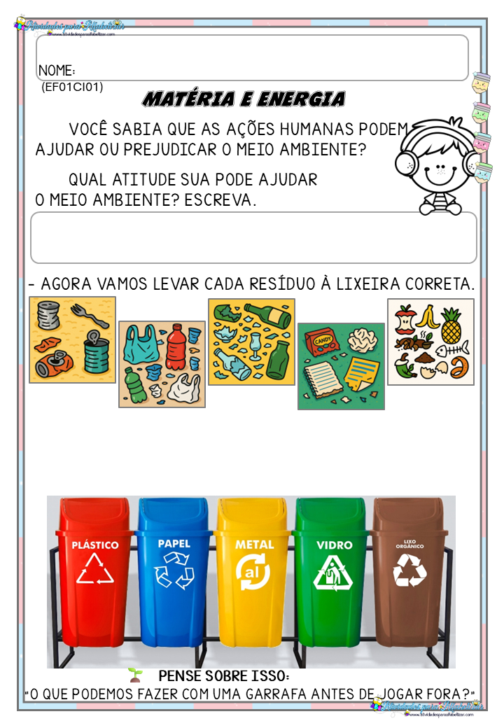 Baixe, imprima e leve para sua turma atividades que unem Ciências, alfabetização e educação ambiental de forma simples, lúdica e significativa!